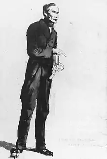 Ford Madox Brown suggested that the club be named after William Hogarth since Hogarth was "a painter whom he deeply reverenced as the originator of moral invention and drama in modern art".[1] Brown and Dante Gabriel Rossetti had worked on some previous independent exhibitions, but became determined to form a permanent exhibition space after the rejection of Pre-Raphaelite work by the Academy in 1857. In response they created their own exhibition, later founding the Hogarth Club in tandem with other sympathetic artists, most notably William Holman Hunt and John Roddam Spencer Stanhope.[2]