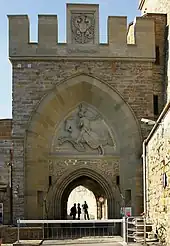 The Eagle Gate (German: Adlertor) and its attached drawbridge form the entrance to the castle. The castle's winding zwinger turns four times and terminates in the bastions. From here, the palatial buildings can be accessed through the square upper gate and so are the rest of the bastions.