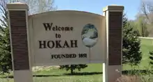 Prior to the arrival of Europeans, the area that is now the city of Hokah was a Native American settlement of the Dakota people.[7] The city's name, which is said to be a Native American word meaning gar fish[8] or the Dakota name for the nearby Root River,[9] derives from the chief of the settlement, Chief Wecheschatope Hokah.[8] There were, at one time, more than thirty Indian mounds throughout the area including several effigy mounds, though most have been lost.[10]