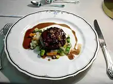French or Japanese cuisine was served during Dinner Time. Passengers who wished to have either course had to make a dinner reservation at a Midori no Madoguchi ticket office up to three days prior to departure.