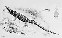 - Arnold EN (1989). "Systematics and adaptive radiation of Equatorial African lizards assigned to the genera Adolfus, Bedriagaia, Gastropholis, Holaspis and Lacerta (Reptilia: Lacertidae)". Journal of Natural History 23: 525–555.