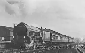 ![]() Leeds-London passenger train passing Holbeck High Level in 1951 | |