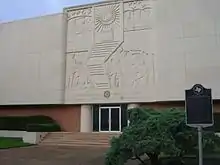 Holland Lodge No. 1 AF&AM is the oldest Masonic lodge in Texas and a founding subordinate chapter of the Grand Lodge of Texas.[1] The lodge was originally chartered by the Grand Lodge of Louisiana on 27 January 1836, making it older than the Republic of Texas.[2] It is in the Museum District of Houston, Texas at 4911 Montrose Boulevard. The building was erected in 1954, designed by architect Milton McGinty. The sandstone mural facade depicting the origins of Freemasonry was carved by William M. McVey.[3]