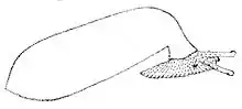 The genital system is like this: there is an atrium of moderate length, the penis is short, with a very long vas deferens, the retractor muscle (p. r.) being inserted at or just beyond the slightly swollen penis, and proximally attached to the floor of the lung, as usual.[2]