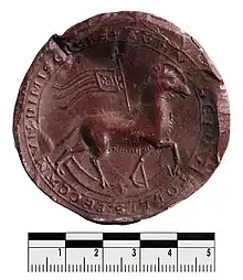 Circular wax cast of a Bristol Templar seal produced between 1850 and 1915 taken from a 13th-century seal matrix
