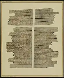 The Holy Cross Sermons (Polish: Kazania świętokrzyskie) are the oldest extant prose text in the Polish language, dating probably from the late 13th or early 14th century. The documents are named after the place where they were originally housed – the Holy Cross Monastery (pl) in Poland's Holy Cross Mountains (Polish: Góry Świętokrzyskie). They were discovered in striped parchment pieces in 1890 by Aleksander Brückner, in the binding of a Latin language codex, which contained the Acts of the Apostles and the Apocalypse. The sermons were first published in 1891, in a "Philological Works" ("Prace Filologiczne") magazine. In 1934, facsimiles of the text were published by the Polish Academy of Learning, and in 2009, new, full edition of the sermons was issued, prepared by professor Paweł Stępień.