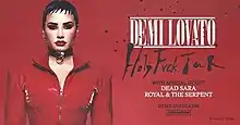The Holy Fvck Tour was the seventh concert tour by American singer Demi Lovato in support of her[lower-alpha 1] eighth studio album Holy Fvck (2022). The tour, consisting of 34 dates, began on August 13, 2022, in Springfield, Illinois, and ended on November 10, in Rosemont, Illinois.[1] Through its three legs, the tour visited both North and South America, with support acts including Dead Sara and Royal & the Serpent.