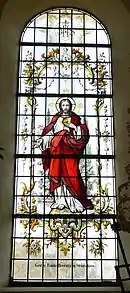 Stained-glass window with the Sacred Heart of Jesus in a parish church in Southern Germany