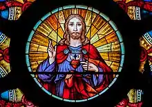 The Most Sacred Heart of Jesus (Latin: Cor Jesu Sacratissimum) is one of the most widely practised and well-known Catholic devotions, wherein the heart of Jesus Christ is viewed as a symbol of "God's boundless and passionate love for mankind".[1] This devotion to Christ is predominantly used in the Catholic Church, followed by high-church Anglicans, and some Western Rite Orthodox. In the Latin Church, the liturgical Solemnity of the Most Sacred Heart of Jesus is celebrated the third Friday after Pentecost.[2] The 12 promises of the Most Sacred Heart of Jesus are also extremely popular.