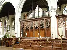 The church has two pipe organs. The organ in the church is a two manual pipe organ dating from 1867 by J. W. Walker. A specification of this organ can be found on the National Pipe Organ Register.[18]