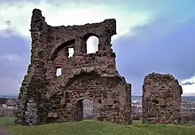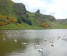 Both Mary, Queen of Scots, and her father James V kept sheep in some areas of the park, looked after by John Huntar.[16] In May 1562 Dunsapie Loch was the setting for an entertainment at the wedding of John, Lord Fleming, and Elizabeth Ross, which involved a theatrical recreation of the siege of Leith.[17][18] Mary had a place made for picnic suppers in the park.[19] Sheep continued to be kept inside Holyrood park until 1975.[20]