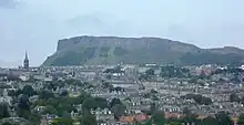 Muschat's Cairn – St Anthony's Chapel can be seen in the distance, centre top