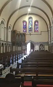 The pipe organ is on the west wall in a timber frame.[30] It was built by Wicklow native Kenneth Jones and installed in 1996.[15][44]