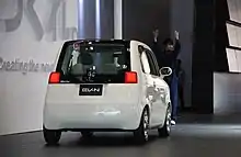 The car is equipped with the Honda LOOP vehicle-to-vehicle communication system.[7] The driver may also communicate with the car via a handheld LOOP device, which includes a liquid-crystal display to provide basic information, such as how long the car has been parked and its state of charge;[4][8] the front fascia of the EV-N lights up as the driver (with the LOOP) approaches or departs.[4] One Honda U3-X personal mobility device is attached to the interior panel of the passenger-side door.[6] The EV-N, U3-X, and other vehicles were shown at Tokyo as part of Honda's HELLO! (Honda ELectric mobility LOop) display.[1][8]