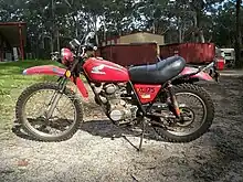 The Honda XL175 was a motorcycle produced by Honda. The XL175 first entered the market in 1973 as a lightweight dual-sport motorcycle, and the model continued in production through 1978. The XL175 had a 173cc single cylinder OHC four-stroke engine mated to a 5-speed transmission and was started via a kickstarter only (no electric starter).[1] The gauges included a speedometer and a tachometer up until 1976, when the tachometer was deleted for that and subsequent years. Braking was via front and rear cable operated drum brakes. The dimensions of the bike were 2,075x840x1,095mm (82x33x43in).