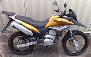 The Honda XRE 300 is a single-cylinder dual-sport motorcycle designed and manufactured by Honda in Brazil. It was launched in August 2009 to simultaneously replace the Japanese firm's two South American on/off-road motorcycles: the XR250 Tornado and the NX-4 Falcon.[1] Unlike these motorcycles' 250 cc and 400 cc engines, the fuel-injected (Programmed fuel injection) 300 cc engine in the XRE300 meets Brazil's new PROMOT 3 emissions rules.[2] It has an anti-lock brake (ABS) option.[3]