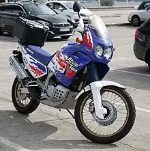 The XRV750 Africa Twin[2][3] was a 742 cc (45.3 cu in)[4] dual-sport first launched in December 1989.[5] and based on the Honda NXR-750, which won the Paris-Dakar rally four times in the late 1980s[6] (from 1986 to 1989).