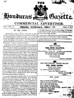 The Honduras Gazette, published as The Honduras Gazette and Commercial Advertiser, was the first newspaper and government gazette in colonial Belize. It ran from 1 July 1826 until sometime during 1829–1838, being succeeded on 29 September 1838 by the Belize Advertiser.