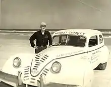 Honest Charley built several race cars during the early years of the Speed Shop. Each was recognizable by his company name hand painted on the side of the car. In 1953 on the Daytona Beach Road Course his modified '39 Ford sedan with a Mercury 59A engine won the Daytona Century Race with a speed of 137 mph.[4][7] He was a major sponsor of drag racers "TV Tommy" Ivo and "Jungle Jim" Liberman, both of whom prominently displayed his logo on their cars. From 1971-72 he sponsored the NHRA sanctioned All-American Stars & Stripes Whole Earth Open Drags race at Beech Bend Park in Bowling Green, KY. He attended the Indy 500 every year from the '30s to the '70s. He was well known at many other tracks such as Daytona and Bristol.