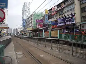 Hong Lok Road (Chinese: 康樂路) is an at-grade MTR Light Rail stop located at the junction of Castle Peak Road and Hong Lok Road in Yuen Long District. It began service on 18 September 1988 and belongs to Zone 5.[1]