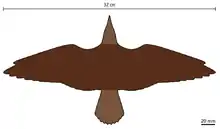 Hongshanornis longicresta was a small species, especially compared to other early ornithuromorphs (birds with a modern tail anatomy), about the size of a thrush, and adult specimens are estimated to have weighed about 50 grams (1.8 oz) in life, with a wingspan of about 320 millimetres (1.05 ft).[2]