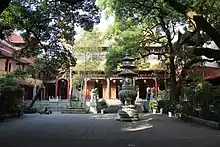 In the latter half of his life, Mazu moved to Hongzhou (present day north Jiangxi), where he began taking students. First he resided on Gonggong mountain, and then he settled in Nanchang's state-sponsored Kaiyuan monastery (today known as Youmin Temple) in Hongzhou (present day north Jiangxi). During his two decade period at this monastery, Mazu's fame spread and he attracted many disciples from throughout the empire.[9]