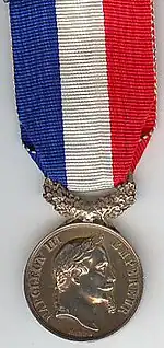 ![]() Honour medal for courage and devotion in silver 2nd Empire (obverse) | |