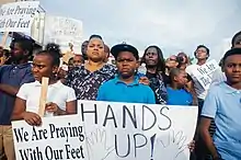 Protesters with signs in Ferguson