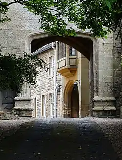 ![]() The front of the hall, seen through the 14th century gatehouse | |