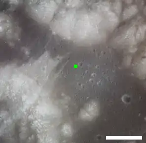 ![]() Location of Horatio crater in Taurus-Littrow Valley. South Massif is at lower left, North Massif is at top center, and Sculptured Hills are at upper right. Scale bar is 5 km | |