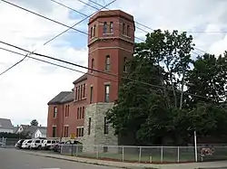 Hornell Armory is a historic National Guard armory building located at Hornell in Steuben County, New York. It is a brick and stone castle-like structure built in 1894. It was designed by architect Isaac G. Perry. The three-story main structure has a four-story round corner tower. Attached to the main structure are an additional pair of two-story corner towers. Extending from the main structure is a long two-story wing with a gable roof and corner stair tower.[2]