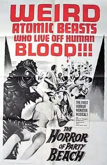 The Horror of Party Beach is a 1964 American horror film in the beach party genre, directed and co-produced by Del Tenney. The film, described as "a take-off on beach parties and musicals".