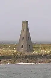 A 16-metre-tall (52 ft) stone beacon stands at the south end of Horse Isle marking the island for shipping. Erected in 1811, it was commissioned by Hugh, 12th Earl of Eglinton on the suggestion of John Ross.[2] It is indicated only by the word "landmark" on the Ordnance Survey map.