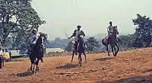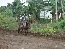 In 1918, Captain J. Lemoigne described the horses of the Choas and Fulani people in northern Cameroon as Dongola crossed with Arabian.[15] In 1926, the French colonial administration in Douala described "a few dozen horses brought by Hausa peddlers or bought in the North for the military administration".[16] About a hundred horses are counted in the Dschang district, owned by the Sultan of Foulbam and customary chiefs.[16] Around 500 horses are counted in the Ngaoundéré region; the report also notes that horse breeding in Cameroon is mainly confined to the Garoua and Maroua regions.[16] In the 1930s, Captain Charles Vallin proposed distributing mounts to mountain Kirdis to encourage traditional chiefs to meet him.[14]