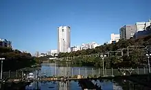 Hosei has three main campuses, which it calls Ichigaya, Koganei, and Tama. The Ichigaya campus is an urban campus halfway between Ichigaya and Iidabashi stations in central Tokyo; its 26-story Boissonade Tower, completed in 2000, can be seen from either station. The campus has a city flavour but is still somewhat isolated from central Tokyo; it is located in the vicinity of the Yasukuni Shrine.