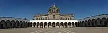 Tolsá's design was based on classic examples such as Les Invalides in Paris and El Escorial near Madrid. The buildings form a rectangle measuring 164 by 145 metres (538 by 476 ft). These are single-storey structures which are 7.5 metres (25 ft) in height. The chapel is twice as high and has a dome rising to 32.5 metres (107 ft). The complex is erected on one level, "so as to facilitate the movement of the sick, the aged, and children."[1]