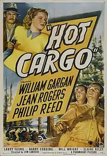 Hot Cargo is a 1946 American drama film directed by Lew Landers and written by Daniel Mainwaring. The film stars William Gargan, Jean Rogers, Phillip Reed, Larry Young, Harry Cording and Will Wright. The film was released on June 28, 1946, by Paramount Pictures.[1][2]