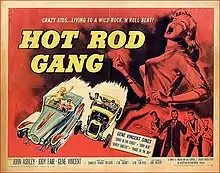 Hot Rod Gang is a 1958 drama film directed by Lew Landers and starring John Ashley. The working title was Hot Rod Rock[2] with the film also released under the title Fury Unleashed. American International Pictures released the film as a double feature with High School Hellcats.[3] The production includes performances by rock and roll musician Gene Vincent,[4] and was the final theatrical feature directed by the incredibly prolific Landers, whose career dated to the mid-1930s.