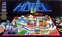 Hotel (known as Hotels in North America) is a dimensional real estate game created by Milton Bradley in 1986. It is similar to Square Mile and Prize Property. In Hotel the players build resort hotels and attempt to drive their competitors into bankruptcy. It was re-released by Asmodee in 2014 as Hotel Tycoon (or Hotel Deluxe in some countries), but is now out of print again.