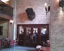In the 1970s, an initial round of renovations to the first floor upgraded the historic Bacchus Pub and added a fine dining Italian-style restaurant. In 1982, a new owner renovated the entire hotel and converted the upper floors to residential condominiums.[3] After some years of decline and a series of owners, in 2004, David Loseff, a private equity investor and part-time Bozeman resident of 14 years, obtained a majority share in the building from a previous owner who had obtained the building in 1999. Loseff took over management and began a new round of renovations to the hotel. He initially brought in live music, upgraded the Robin Lounge (now the bar of Ted's), and operated a casual restaurant while locating new tenants to run the restaurant and the Bacchus Pub.[6] Ultimately, Ted's Montana Grill, owned by media mogul Ted Turner, opened in June 2008.[7] To accommodate the new venture, the old restaurant space as well as the former Robin Lounge were remodeled and reconfigured,[8] so that Ted's now encompasses 4,800 square feet (450 m2).[7] The Bacchus Pub, an institution throughout the history of the hotel, had been closed for almost four years, but was renovated and reopened under its current management in December 2008.[9]