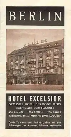 Hotel Excelsior was a hotel in Berlin, Germany. It occupied number 112/113, Königgrätzer Straße (today's Stresemannstrasse) on Askanischer Platz in the Berlin district of Kreuzberg. It was one of the largest and most luxurious hotels in Europe, until its destruction during World War II.