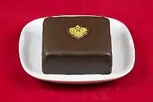 A speciality of the hotel is the Imperial cake, known as the Imperial Torte, which is a marzipan and chocolate torte. It is based on a recipe that is said to have been created by an apprentice cook who fashioned it when Emperor Franz Joseph opened the hotel in 1873.[8] The confection comes in either a plain pinewood box or a cardboard box (for shipments), each containing a single torte or a group of small tortes.