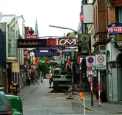 ![]() Große Freiheit in 2006. Hotel Luxor is on the left with the Mehrer sign. | |