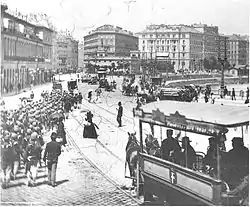 ![]() Old photograph of the Hotel Metropole in the back | |