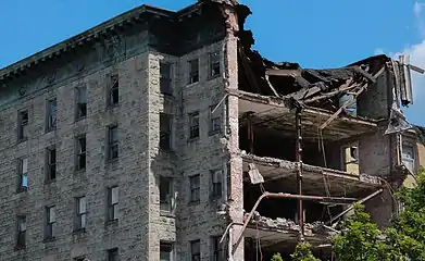 Hotel Sterling was a hotel in downtown Wilkes-Barre, Pennsylvania, at the intersection of River Street and Market Street. It was opened in 1898 by local businesspeople, who then owned a music hall located at the site, and was named after Emma E. Sterling,[1] whose late husband, Walter G. Sterling, a local banker and businessman, owned a share of the music hall. Emma was a driving force behind the building of the hotel. The hotel was later expanded by Andrew Sordoni by connecting it to the Plaza Hotel in 1936. After lying abandoned for years, the non-profit organization CityVest purchased the hotel and demolished the 14-story Plaza tower portion and four-story connecting building in 2007 in an attempt to make the property more marketable to developers. Demolition of the original 1897-built building began on July 25, 2013 and finished on July 30, 2013.