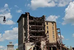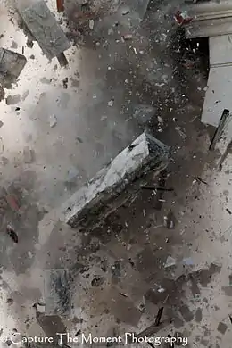 After a 17-month delay from the originally scheduled demolition date, demolition of the building commenced on July 25, 2013, the building was completely demolished by July 30, 2013, and clean-up is expected to be mostly complete by August 6, 2013. Below ground stabilization work will continue until around August 27, 2013. It must be completed no later than September 23, 2013. Brdaric Excavating was awarded the bid on June 18, 2013 for the demolition project after submitting the lowest bid ($419,000) out of 14 considered by the city.[10][11]