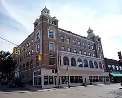 The first known European settler of Houghton was named Ransom Shelden, who set up a store named Ransom's near Portage Lake,[9] though it is unclear whether this was in the same building as the 1852 Shelden and Shafer drugs, sometimes described as "the first commercial building constructed in Houghton," which Shelden owned with his son Ransom B.[10] The main street of Houghton, variously called "Sheldon Avenue," (incorrectly) Sheldon Street, and Shelden Avenue, is named for him. In the 1970s the construction of a parking deck and the connection of downtown stores[11] to create Shelden Center significantly changed the downtown.