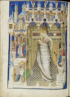 The Hours of Isabella Stuart, Duchess of Brittany (MS 62) is an illuminated Book of Hours produced at Angers either between 1417 and 1418 or before 1431 (there are two competing theories as to its commission), in the workshop of the Rohan Master,[1] though there were contributions from other masters, including the Master of Giac and the Master of the Virgin.[2]