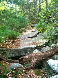The Housatonic Range Trail is a 6.2-mile (10.0 km) Blue-Blazed hiking trail on Candlewood Mountain in the town of New Milford. The north-south axis of the trail parallels the Housatonic River through private land and land trust (e.g. Weantinoge Heritage Land Trust) parcels. The Housatonic Range Trail is maintained largely through the efforts of the Connecticut Forest and Park Association, which provides online Blue Trail maps.