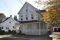 The House at 54 Spring Street in Wakefield, Massachusetts is a well-preserved Queen Anne Victorian house. The 2+12-story house was built c. 1889–90, and is most notable for its detailed shingle work. The house has an L shape, with a porch that wraps around the front and right side, into the crook of the L. The windows are topped by shed-roofed hoods with cut shingles, and there are bands of decorative shingle work filling the north side gables.[2]